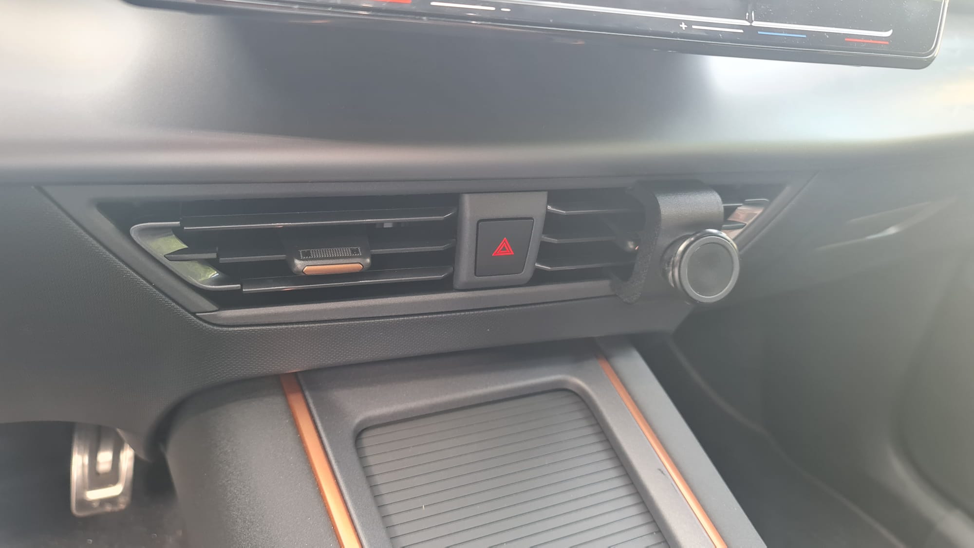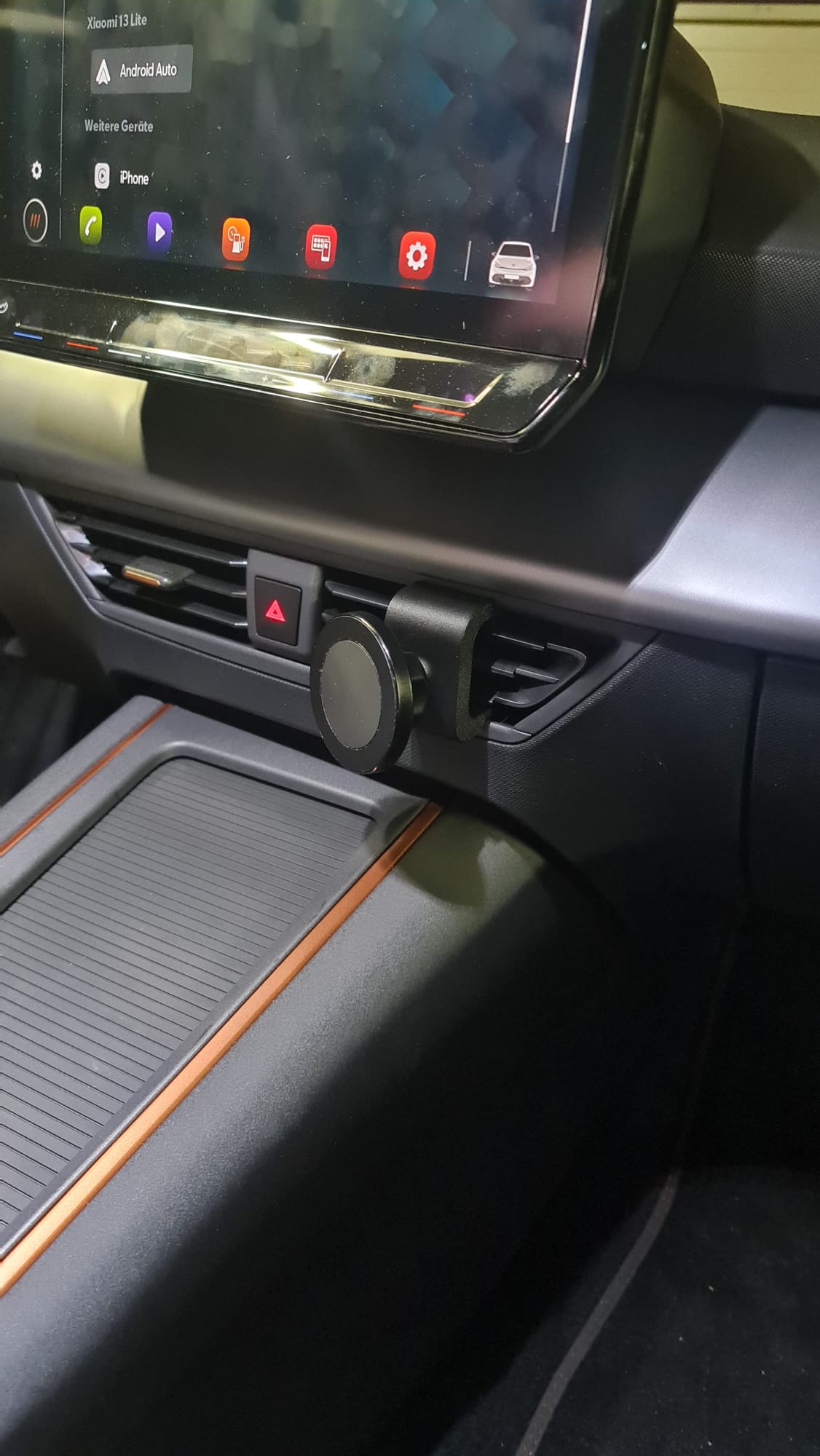 Der Halter wird zwischen dem oberen und unteren Rand der Lüftung eingesteckt.