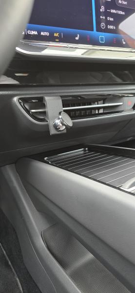 Der Halter wird einfach in der Lüftungsdüse angeklemmt und kann beliebig nach links und rechts verschoben werden.